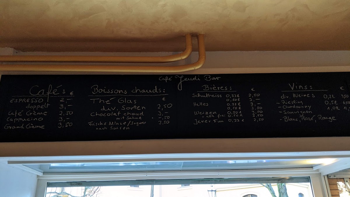 Café Jeudi Bar Menu